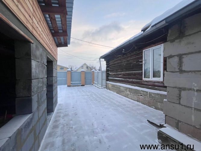 Дом № 1: 108 кв.м, из бревна + из блока. Кухня-гостиная, три комнаты, просторная прихожая, два санузла. Этот дом идеально подходит для большой семьи, где каждый имеет пространство, но все остаются вместе.