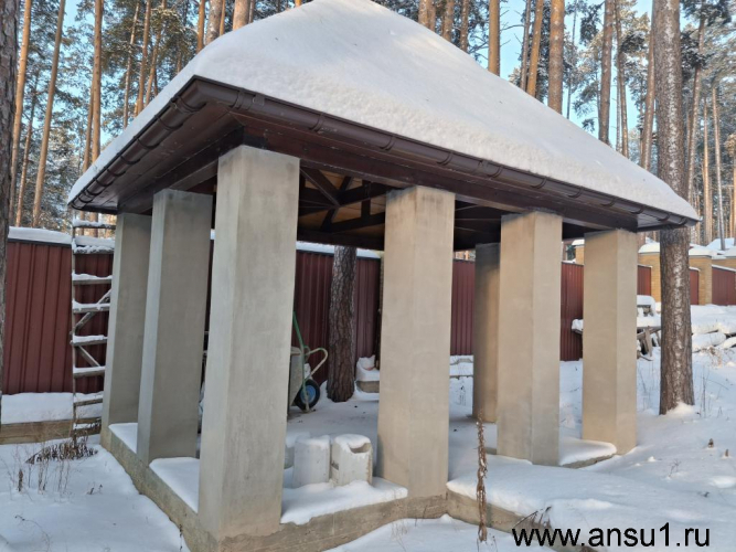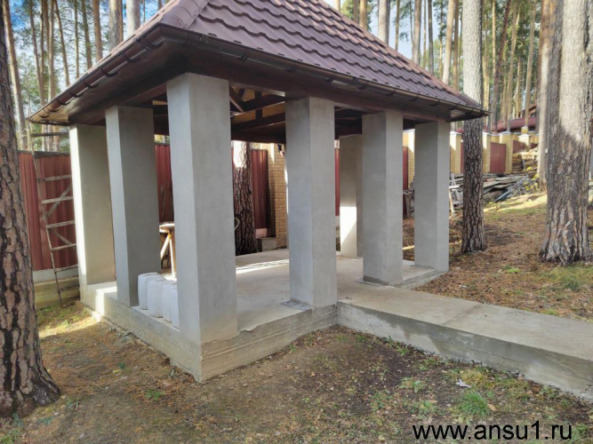 Капитальная беседка-летняя кухня 10 кв.м с подведенными коммуникациями, где можно наслаждаться свежим воздухом и общением с близкими.